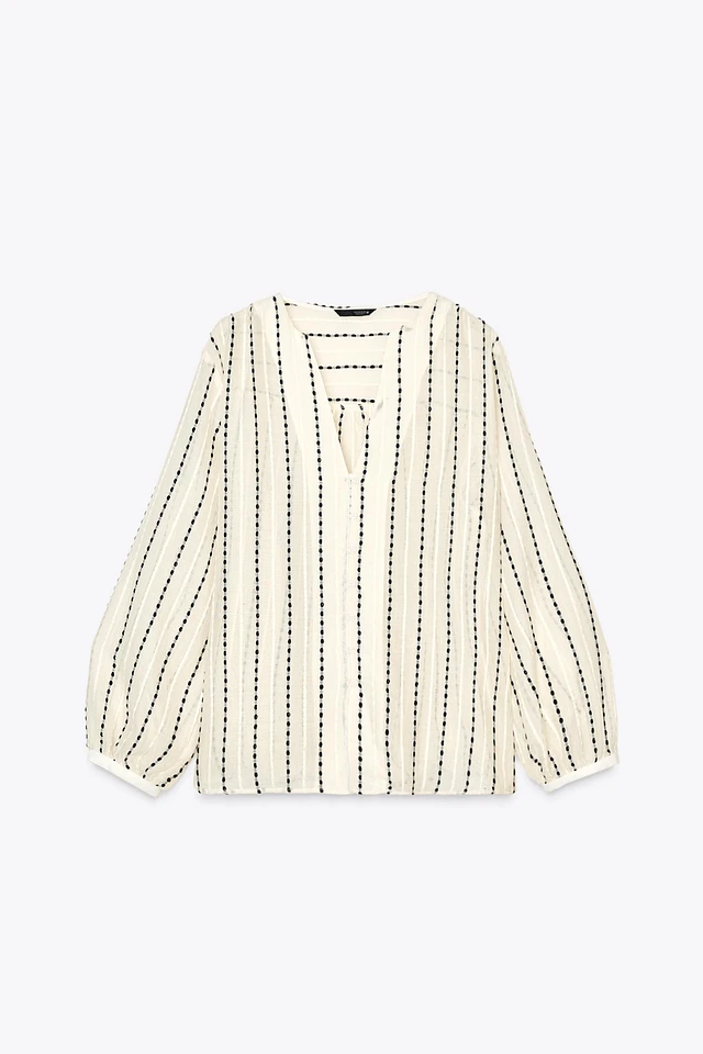 SEMI-SHEER BLOUSE WITH EMBROIDERED STRIPES