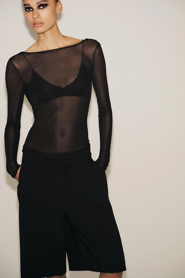 Edikted Oversized Semi Sheer Long Sleeve T Shirt