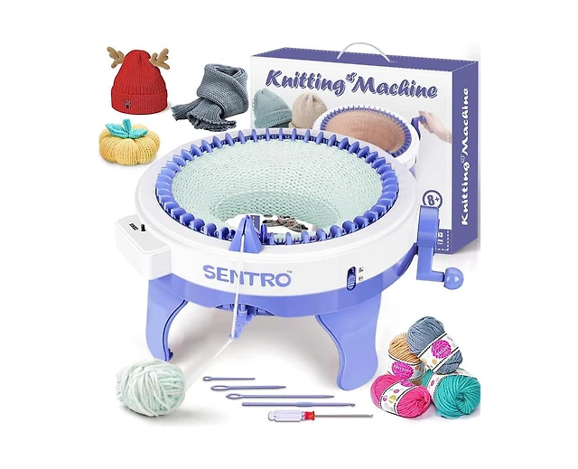 Sentro 48-Needle Knitting Machine - Blue | Auto Knit Scarf, Hat, Sweater | Easy for Beginners, Includes Tools & Guide