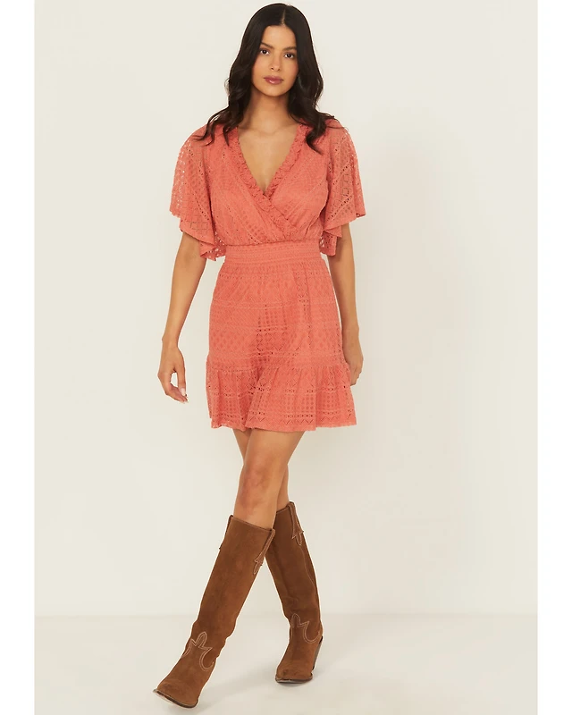 Shyanne Women's Faux Wrap Lace Mini Dress