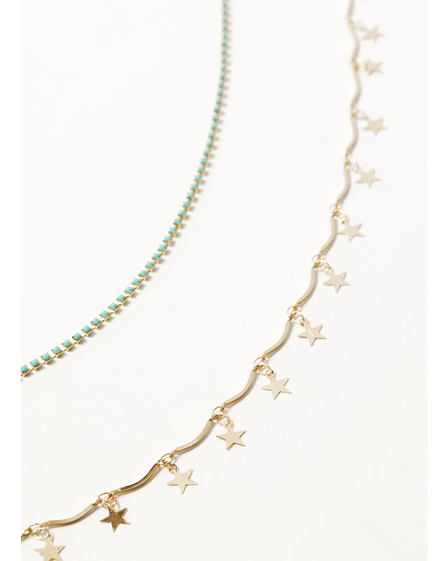 Shyanne Women's Stars Golden Charm Necklace Set - 2 Piece