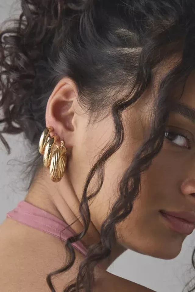 Ann Taylor Wavy Metal Hoop Earrings Goldtone Women's