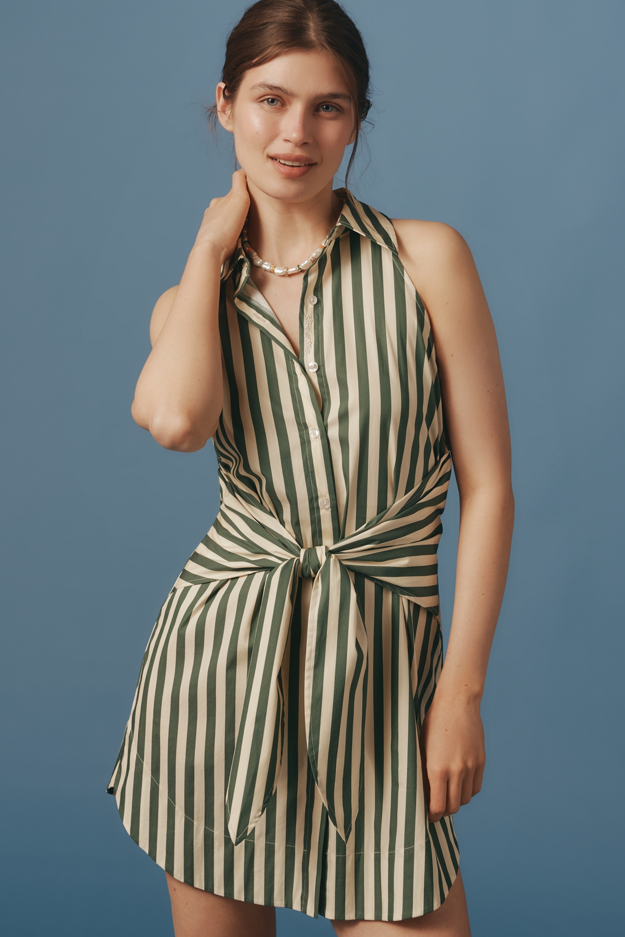 The SIMONMILLER Loch Sleeveless Mini Shirt Dress is crafted from crisp cotton poplin and features a playful back cutout with an adjustable tie that can be styled in the front or back.