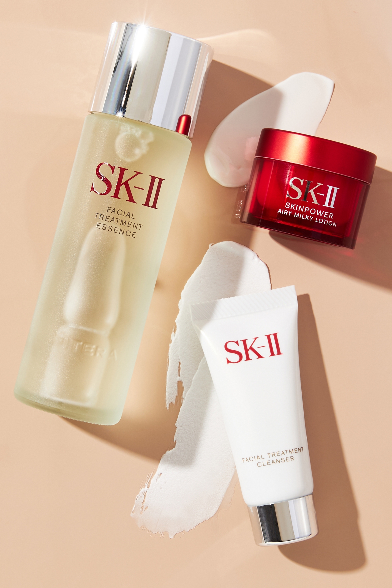 This three-piece set features SK-II's Pitera Facial Treatment Essence, Facial Treatment Cleanser, and Skinpower Airy Milky Lotion. Ideal for all skin types, the trio helps to combat dark spots, fine lines and wrinkles, and dryness.