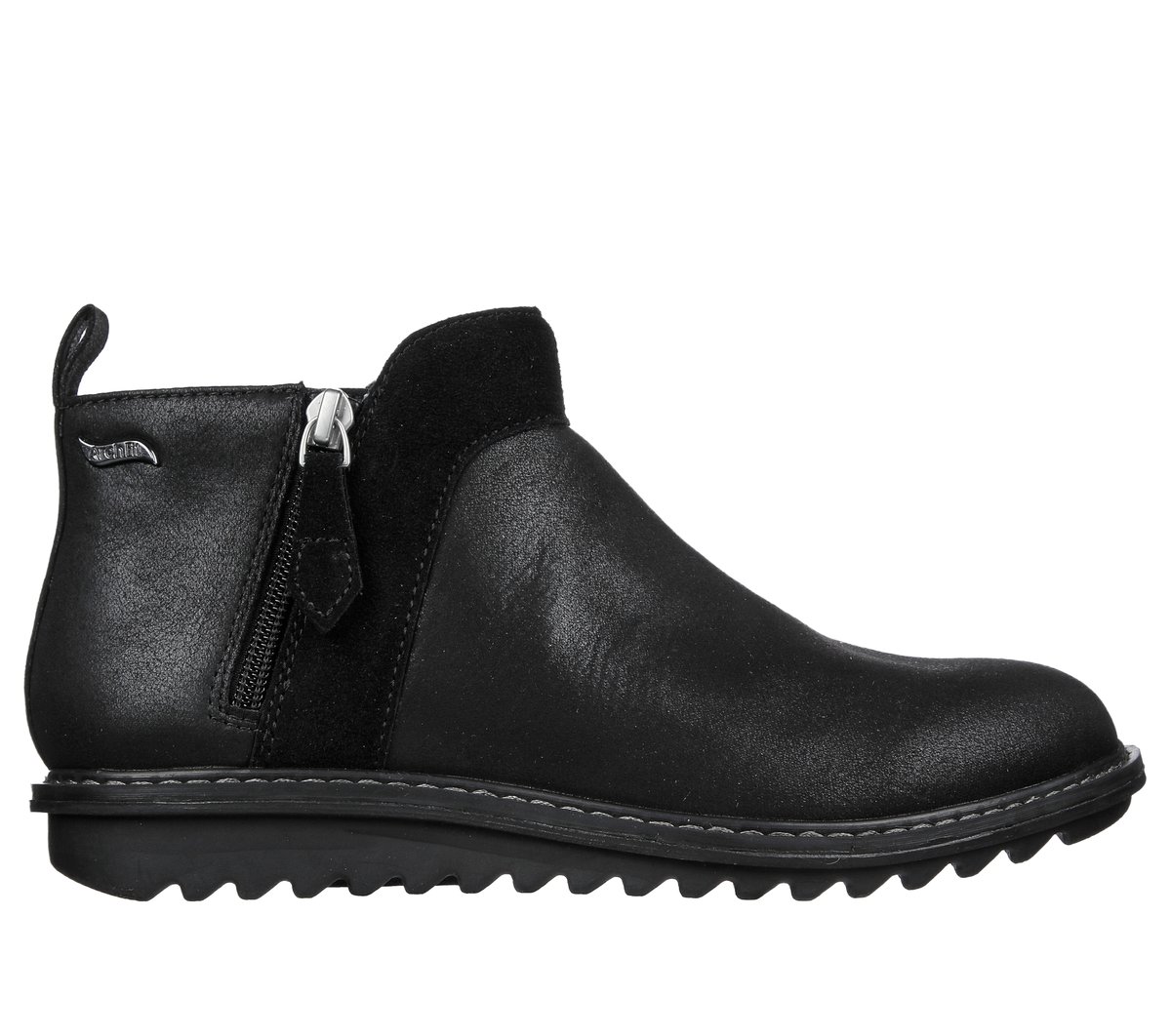 Step into the season with stylish supportive comfort wearing Skechers Arch Fit Mojave - Indefinite. This ankle boot features a microleather and suede upper with a side zip closure, removable Arch Fit® cushioned insole and a lightweight flexible midsole.