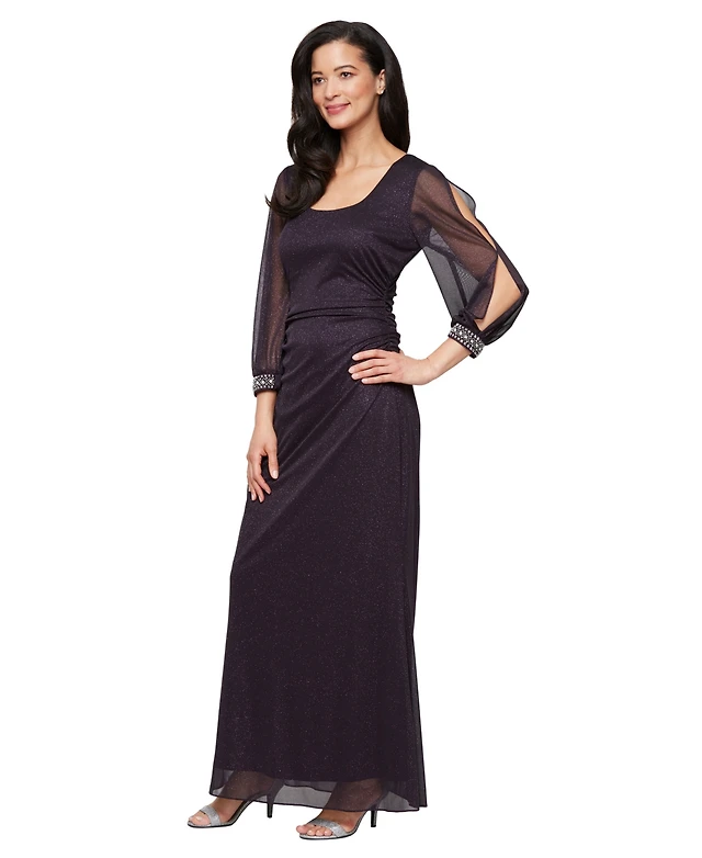 Sl Fashions Women's Beaded-Sleeve Ruched-Waist Gown