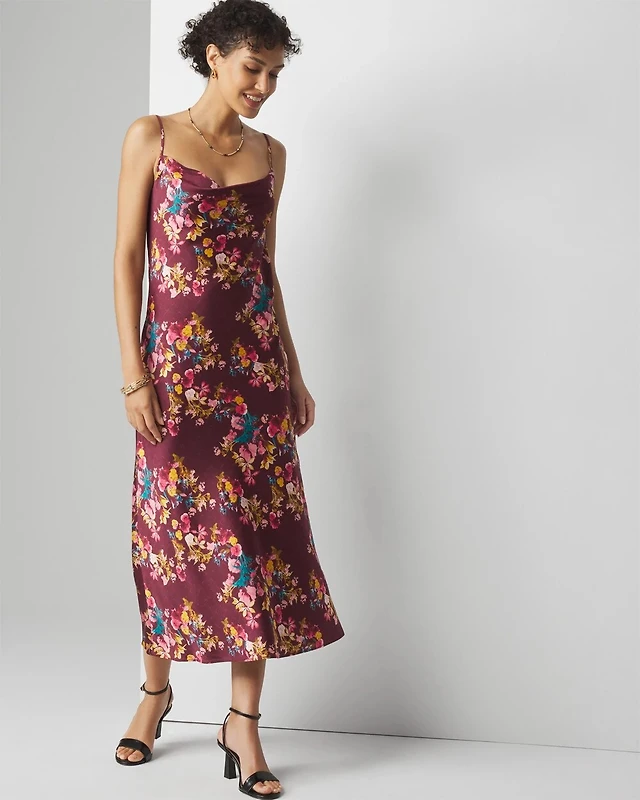Dkny Women's Sleeveless Cowl Neck Midi Slip Dress