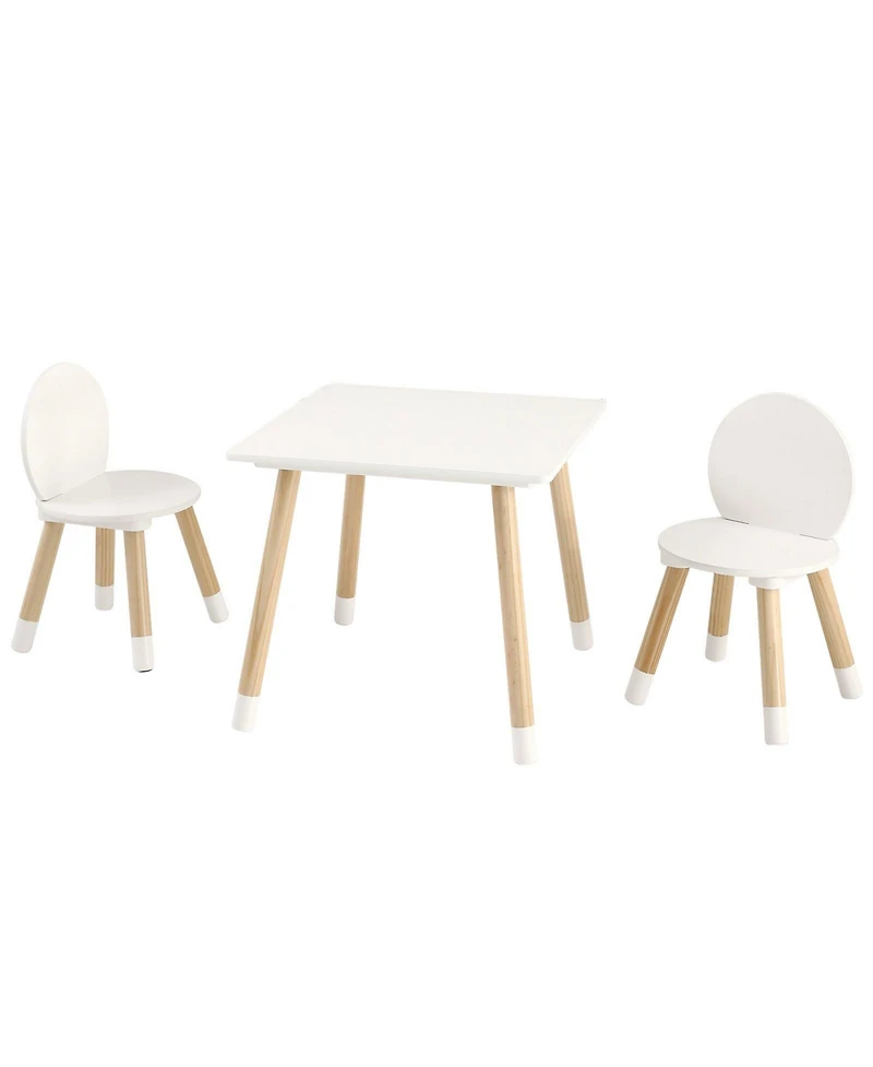 Provide a dedicated space for creativity and learning with this Kids Table and 2 Chairs Set, designed for art, craft, reading, and educational activities. The set features a sturdy table surface that accommodates a variety of projects, paired with two comfortable chairs sized perfectly for young children. Crafted from durable materials, this compact set fits easily into playrooms, bedrooms, or study areas, encouraging focus and imagination. Whether your child is painting, reading, or doing homework, this versatile set offers a functional and inviting environment that supports growth and exploration.