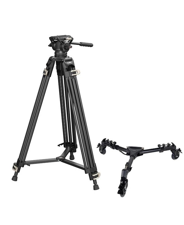 SmallRig Ad-01 3751B 3-Section Heavy-Duty Aluminum Tripod with Fluid Head, Bundle with Universal Tripod Dolly