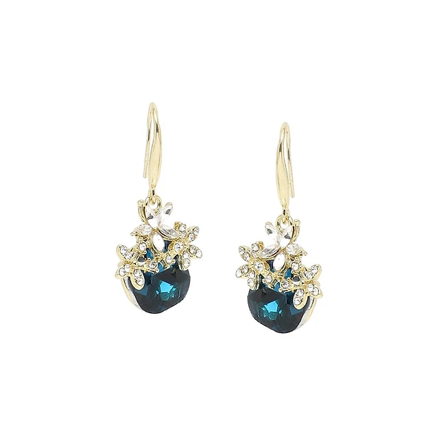 Sohi Women's Gold Embellished Rose Drop Earrings