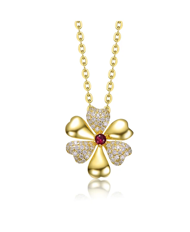 GiGiGirl Sterling Silver 14k Gold Plated Colored Enamel and Cubic Zirconia Flower Pendant Necklace