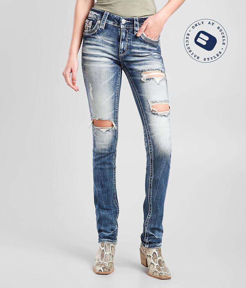 Mid-Rise Straight - A classic mid-rise with a higher waistline, crafted with quality fabric for a premium fit and feel. Mid-rise Cuffed - extend your inseam 1" when uncuffed Slim through the hip and thigh 12" bottom opening Comfort waistband Metallic embroidered faux flap back pockets Destruction details Shoe sku 959765 Model Info: Height: 5'10" | Bust: 32" | Waist: 24" | Hip: 35" | Wearing Size: 25x34