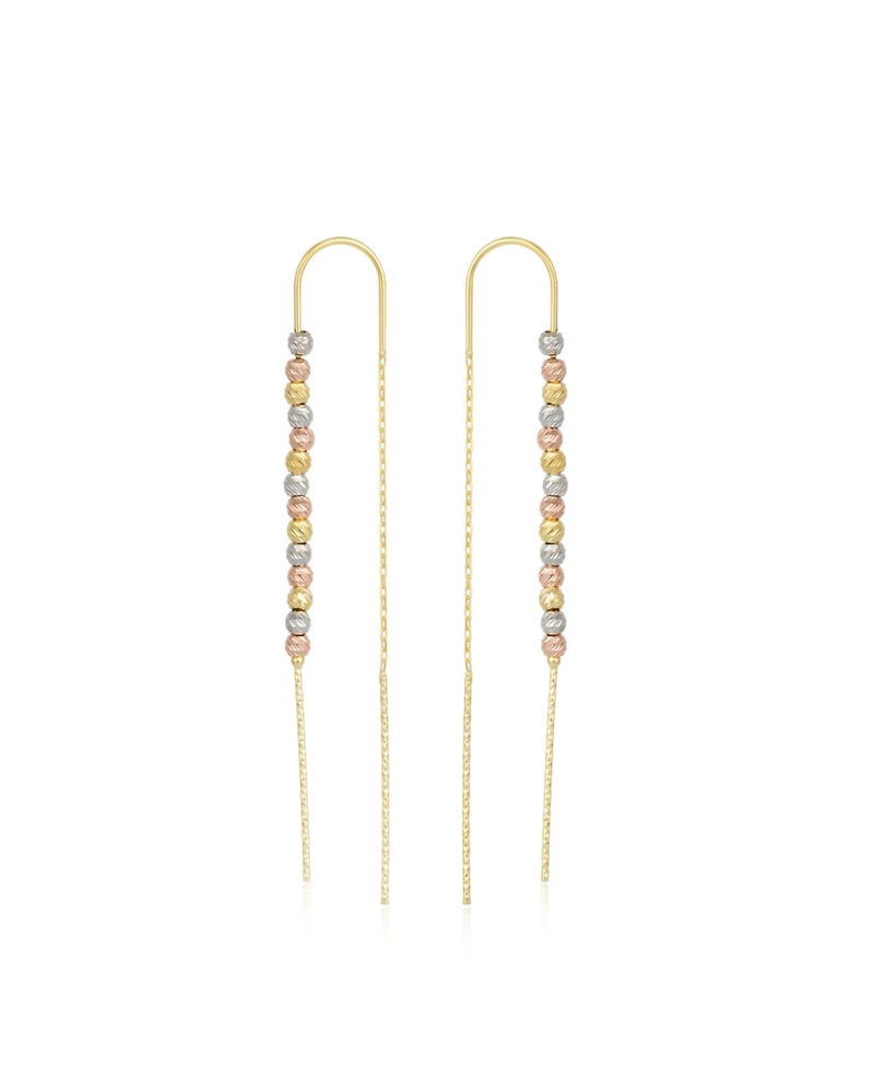 Whether going to an office, on a weekend getaway, or on a night out with friends- these Dorica Chain Bead Drop Earrings go pretty well with an everyday look. Fashioned in 925 sterling silver metal, it flawlessly showcases a drop chain threader design embellished with round beads- all set in a glossy yet lustrous body finish. It can be worn in different ways- let it wrap around the second piercing or dangle freely. These elegant earrings come in gold, silver, and gold/silver/rose gold mix tones- so pick your favorite one to complement other jewelry pieces. Wear it alone for a classic look, or accent it with formal, informal, and luxurious party wear. Further, you can gift this beauty to your friends, family, and dear ones on their special day.