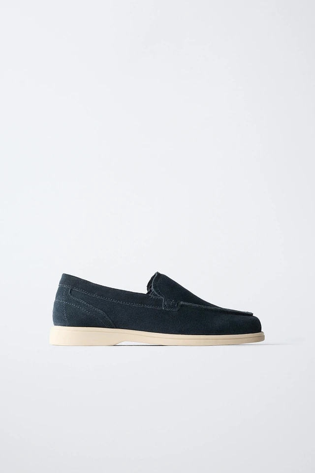 Soft split leather deck shoes