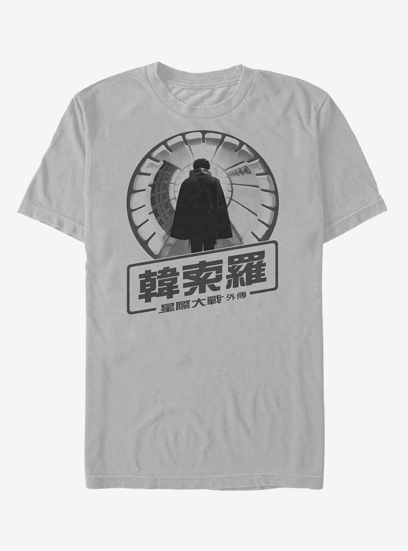 Lando Calrissian speaks the language of cool so he's universally loved with the Solo: A Star Wars Lando Kanji Text Men's T-Shirt. This cool Lando shirt shows off your favorite gambler above Japanese characters.