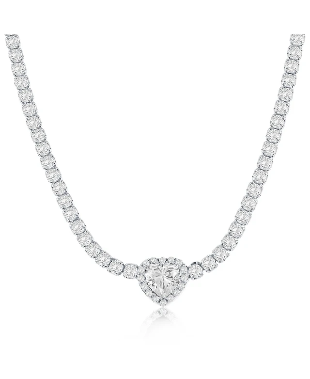 Simona Sterling Silver Heart Cz Tennis Necklace