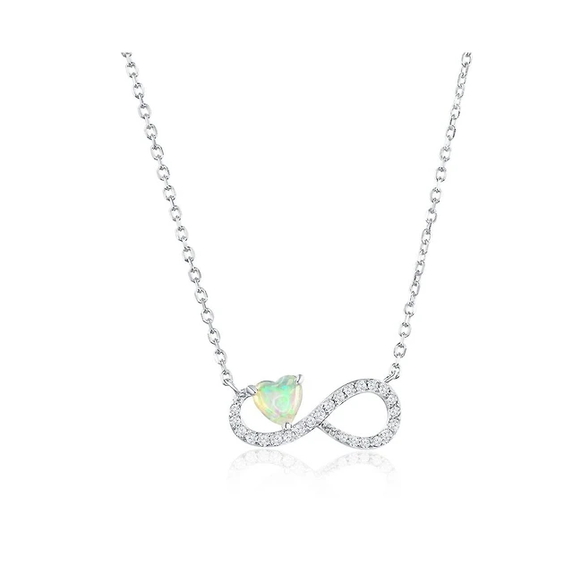 Sterling Silver, White Opal Heart, Cz Infinity Necklace