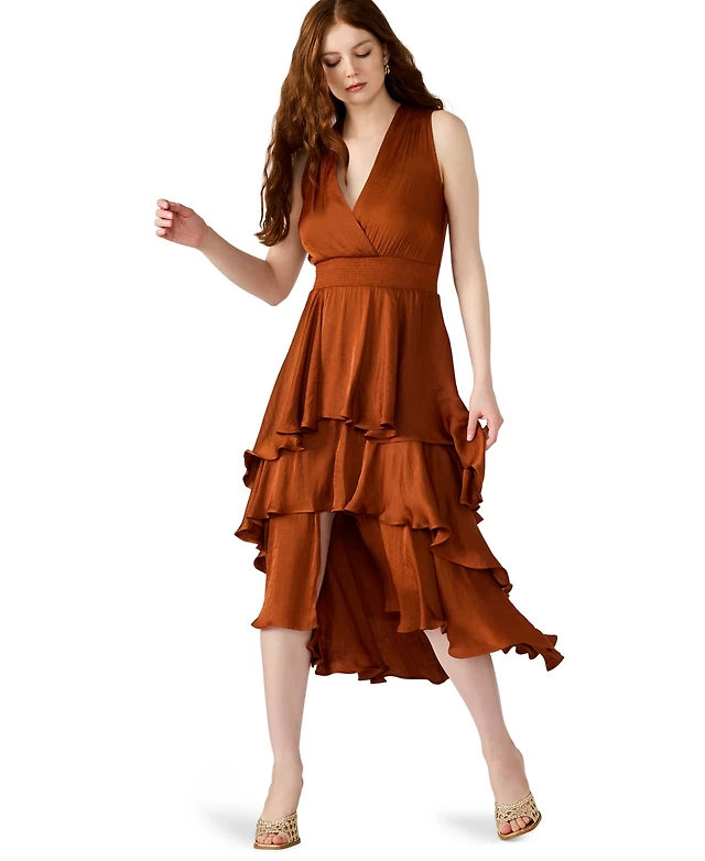 Steve Madden Women's Nash Smocked Tiered Midi Dress