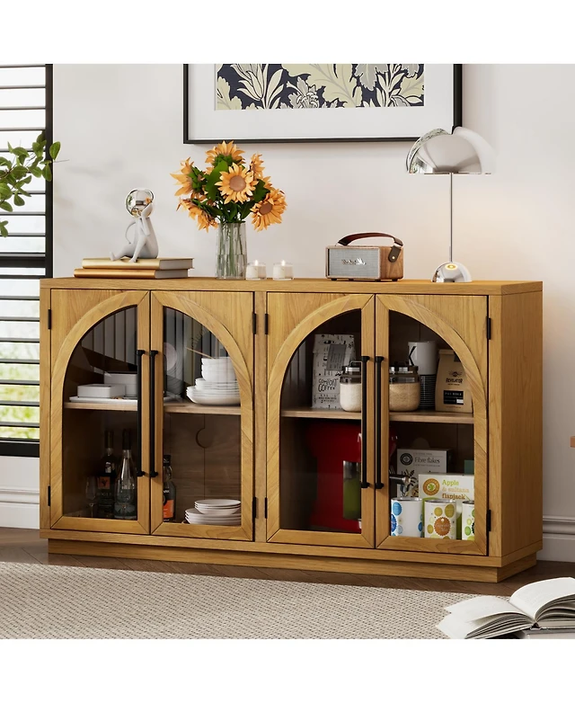 Streamdale 4-Door Sideboard Buffet with Glass Doors & Shelves