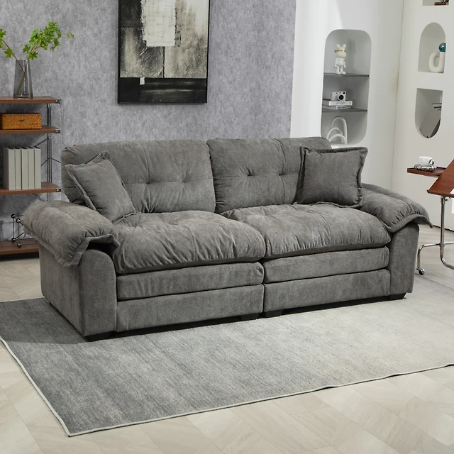 Streamdale Furniture Streamdale Cloud Couch 2 Seater Chenille Sofa with Pillows, Gray