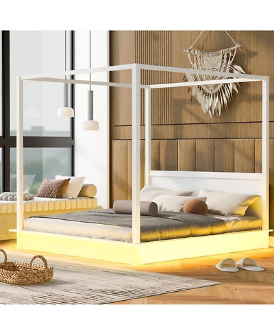 Streamdale Furniture Queen Wood Led Canopy Bed, Platform, No Box Spring