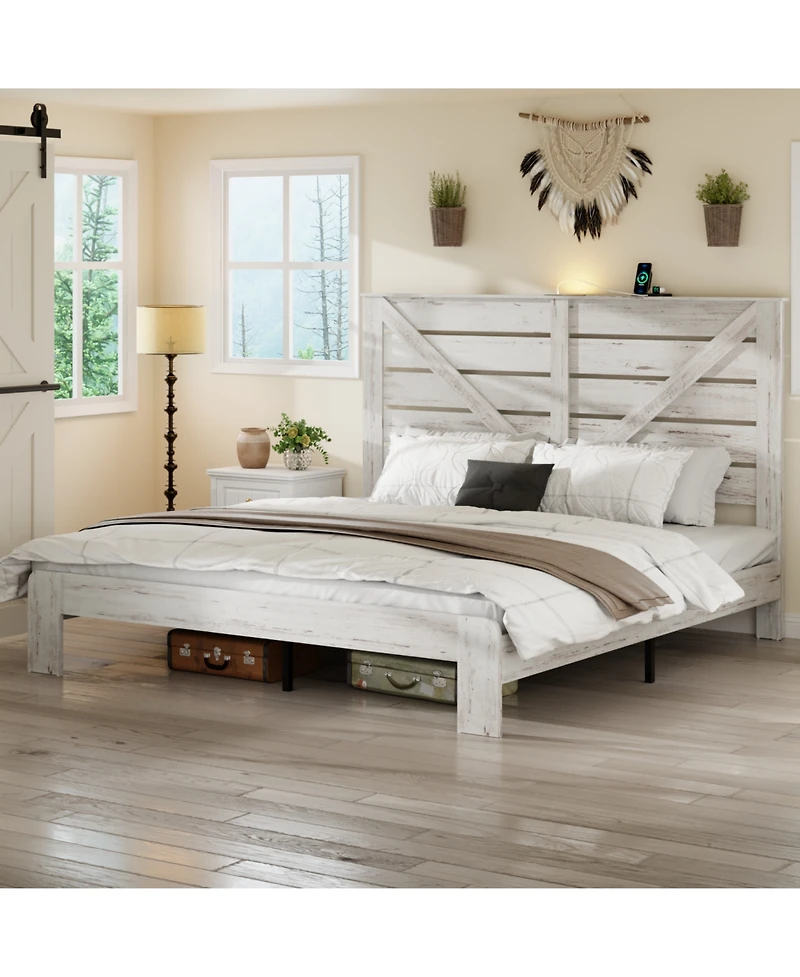 Streamdale Furniture King White Wood Platform Bed Frame, Noise Free, Easy Assembly, Under Bed Storage