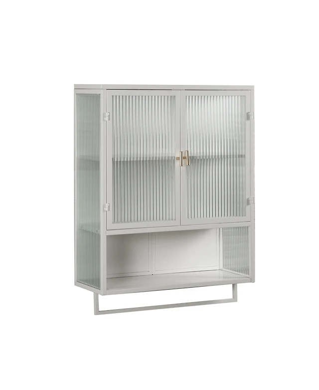 sumyeg 27.56" Two-Door Wall Cabinet with Glass Doors and Three-Tier Storage for Entryway, Living Room, or Bathroom
