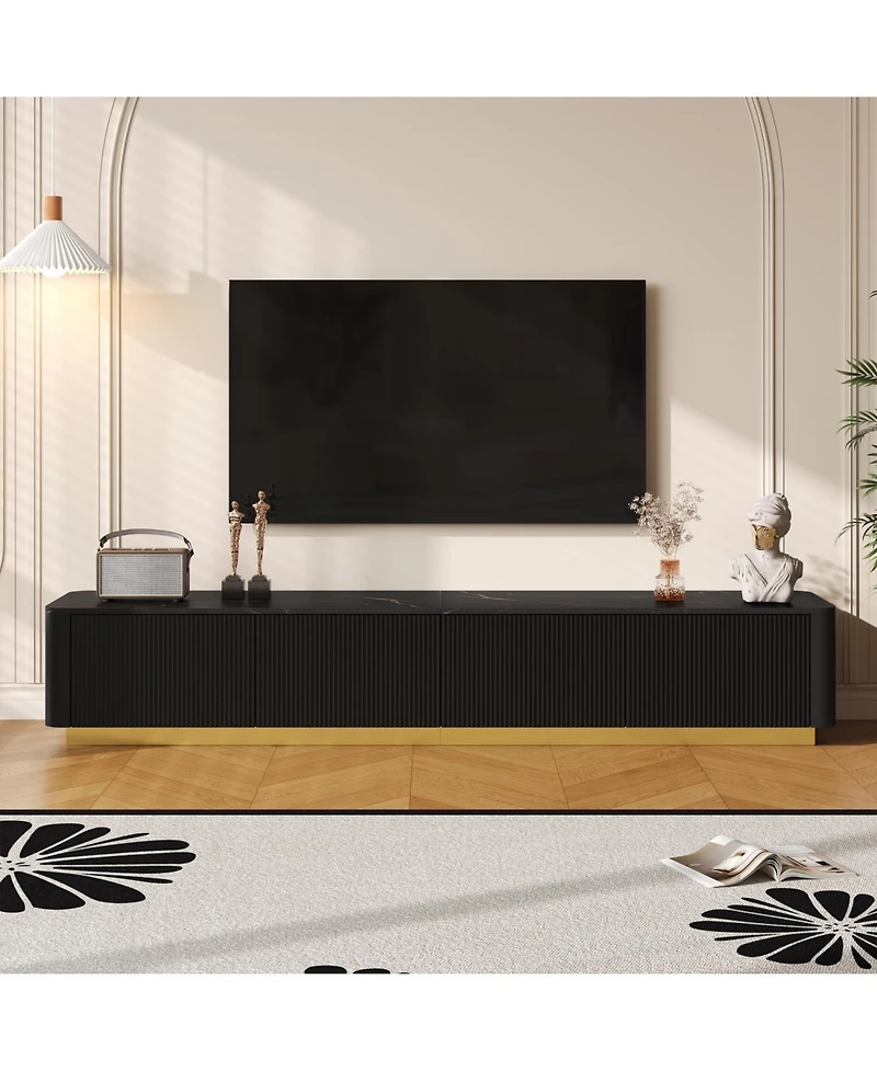 Streamdale Furniture Streamdale Luxury Fluted Tv Stand - 85", Faux Marble, 4 Drawers, Gold Base