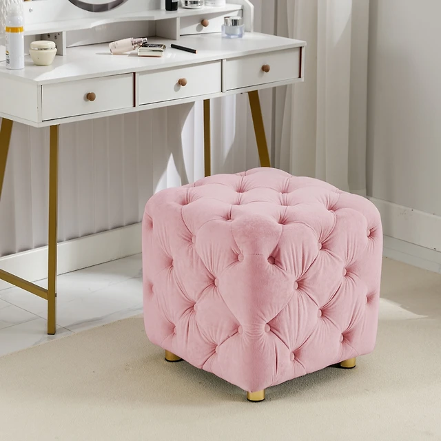 Streamdale Pink Velvet Ottoman Elegant Accent