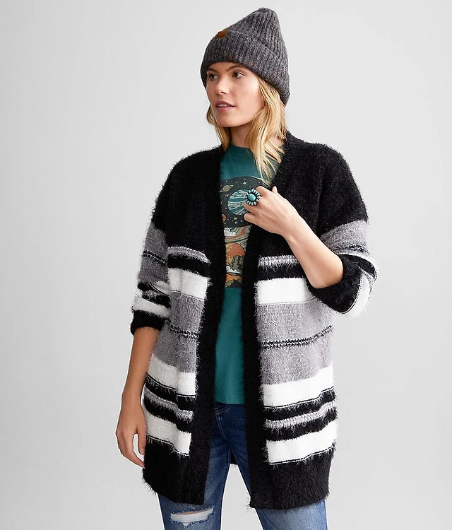 Striped Eyelash Knit Cardigan Sweater
