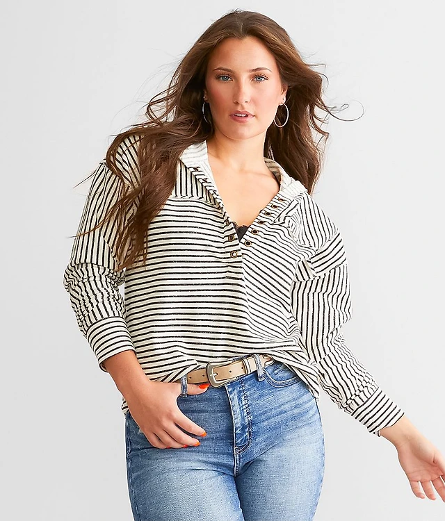 Nubby Stripe Hooded Sweater