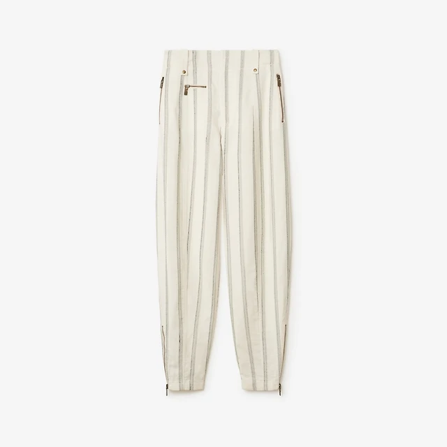 Striped Silk Blend Tailored Trousers in White/black - Women | Burberry® Official