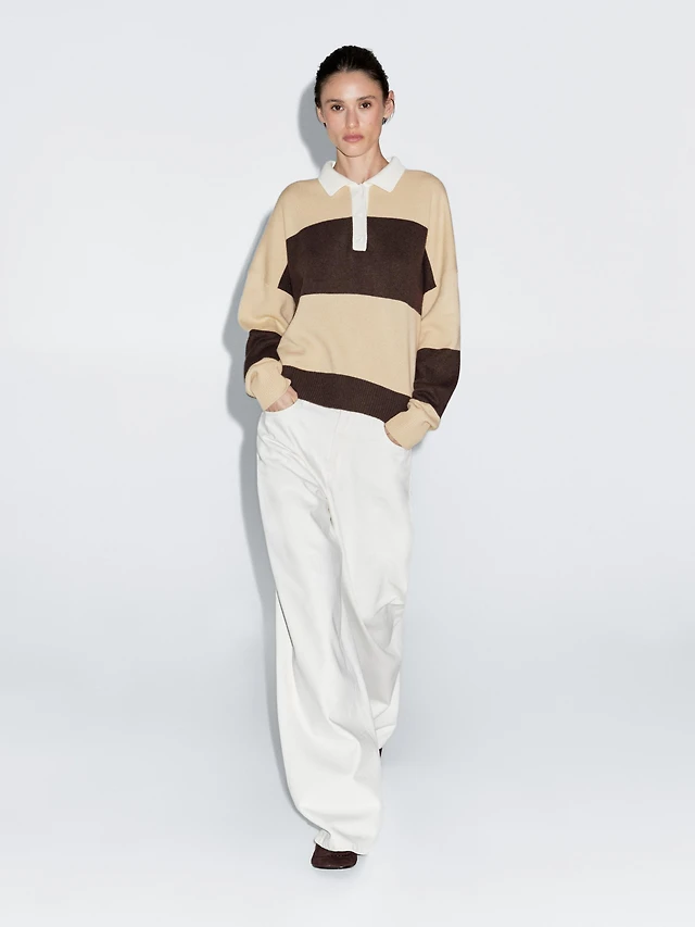 Striped wool blend polo sweater