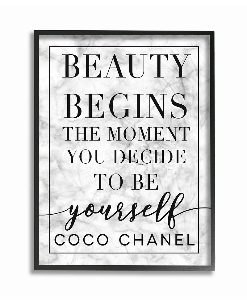 Stupell Industries Beauty Begins Once You Decide to Be Yourself White Marble Typography Framed Texturized Art, 16" L x 20" H