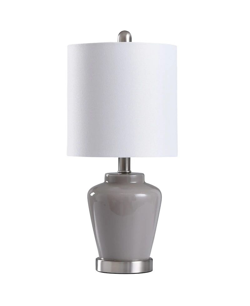 Reminiscent of a classic ginger jar, the body of this glass table lamp is both charming and versatile. Its gray finish lends a lovely hint of color to any setting and this lamp would look right at home on a nightstand or side table.