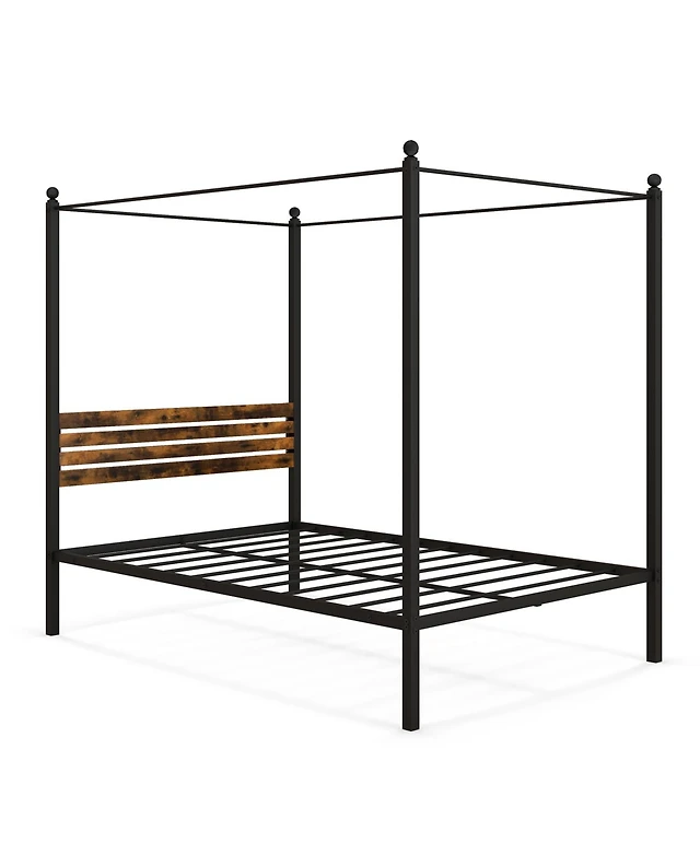 Sugift Full Canopy Bed Frame with Under Bed Storage