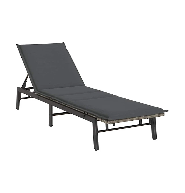 vidaXL Folding Sun Lounger Grey Pe rattan, powder-coated steel Standard