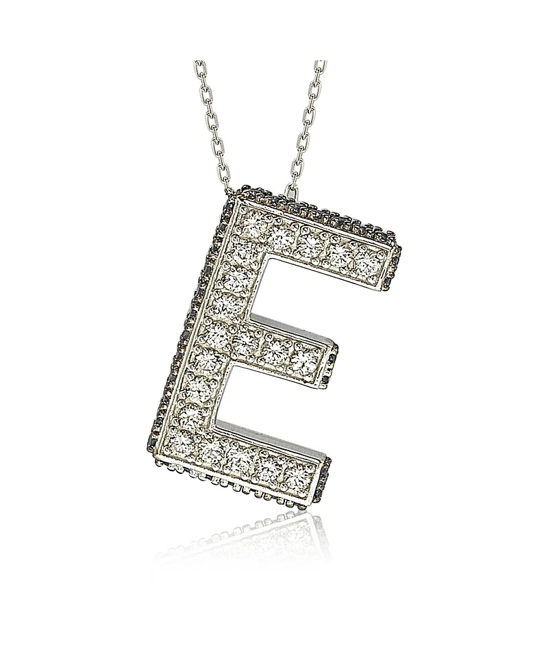 Suzy Levian New York Suzy Levian Sterling Silver Sapphire 3-d Letter "E" Initial Pendant