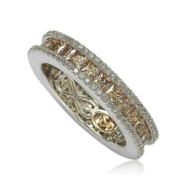 Suzy Levian Sterling Silver Cubic Zirconia Princess Cut Brown Eternity Band