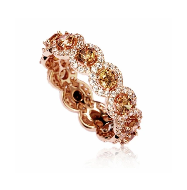 Suzy Levian Sterling Silver Cubic Zirconia Brown Flower Eternity Band