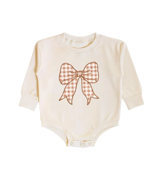 Sweet Wink Baby Girl Gingham Bow Patch Long Sleeve Romper