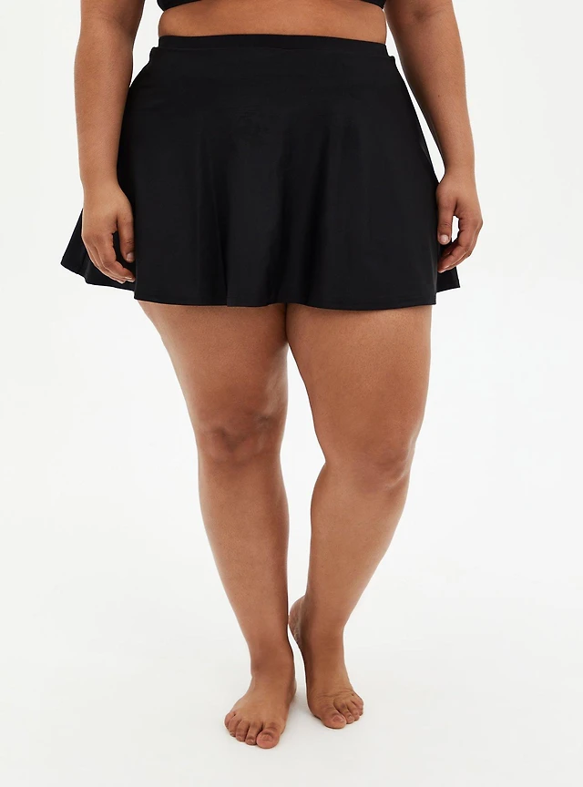 High Rise Mid Length Side Tie Swim Skirt With Brief
