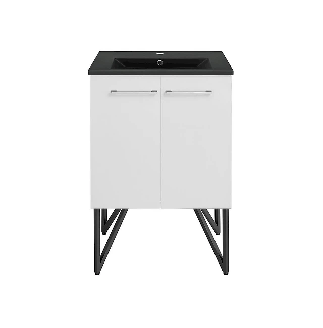 Swiss Madison Annecy 24 in. White Bathroom Vanity With Black Ceramic Sink Top