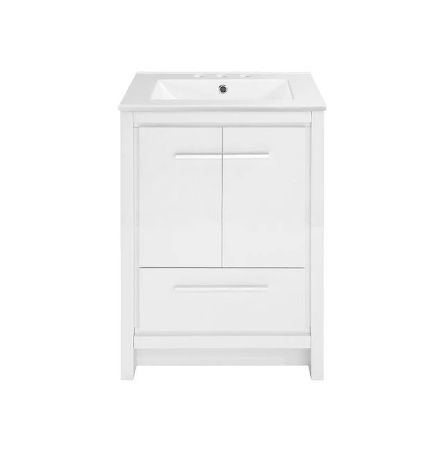 Swiss Madison Virage 24 in. White Bathroom Vanity With White, 3-Hole Ceramic Sink Top