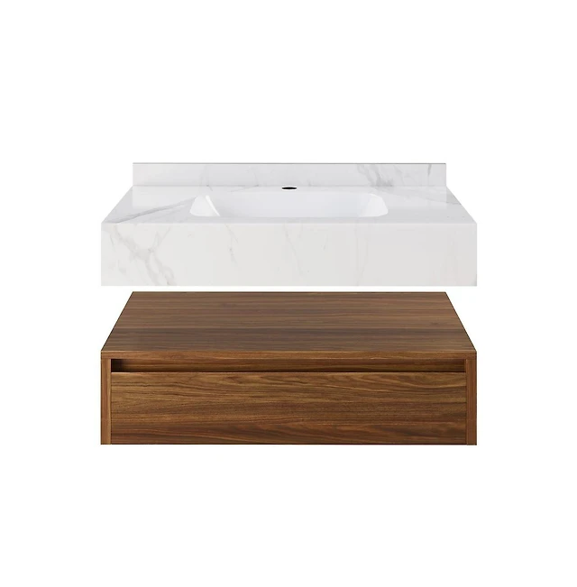 Swiss MadisonAvancer 36" Wall-Mounted Bathroom Vanity in Brown Oak with White Marble Sink Top