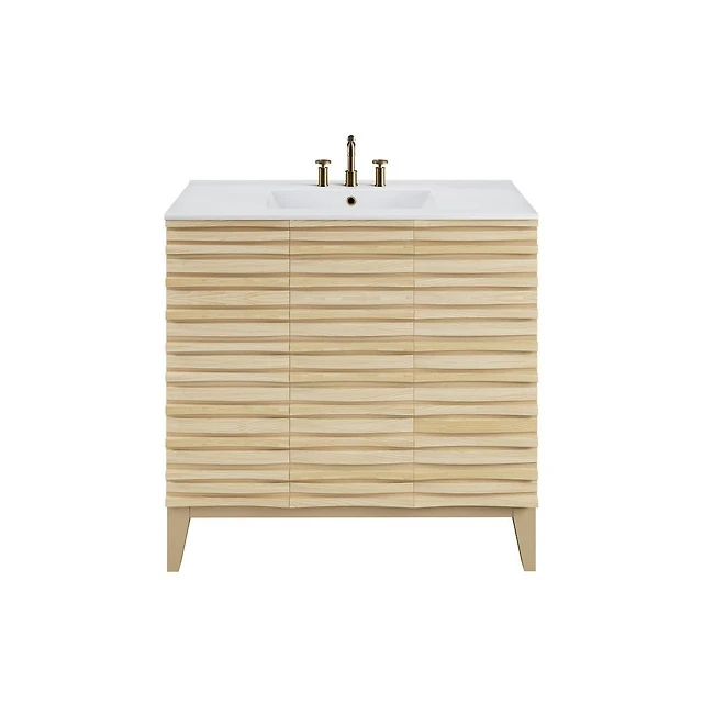 Swiss MadisonCascade 36 in. Natural oak Bathroom Vanity With White, 3-Hole Ceramic Sink Top