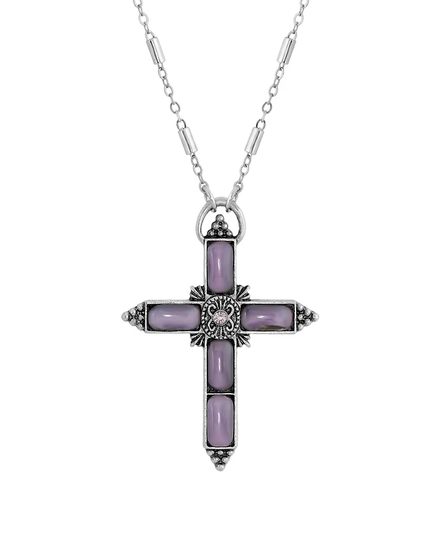 Symbols of Faith Silver-Tone Purple Moonstone Purple Crystal Cross 20" Necklace