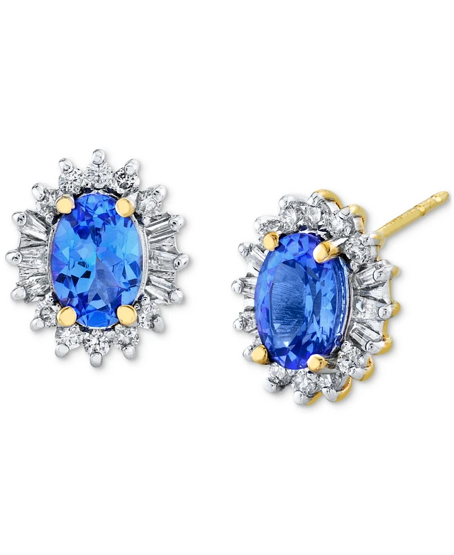 Tanzanite (1 ct. t.w.) & Diamond (1/4 ct. t.w.) Halo Stud Earrings in 10k Gold
