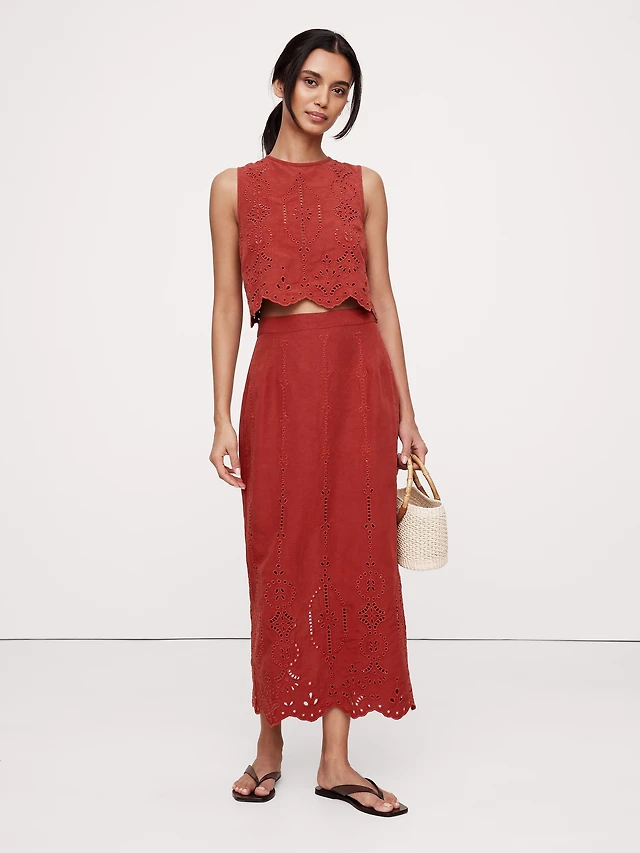 Liverpool Los Angeles Women's Cotton Eyelet Maxi Skirt