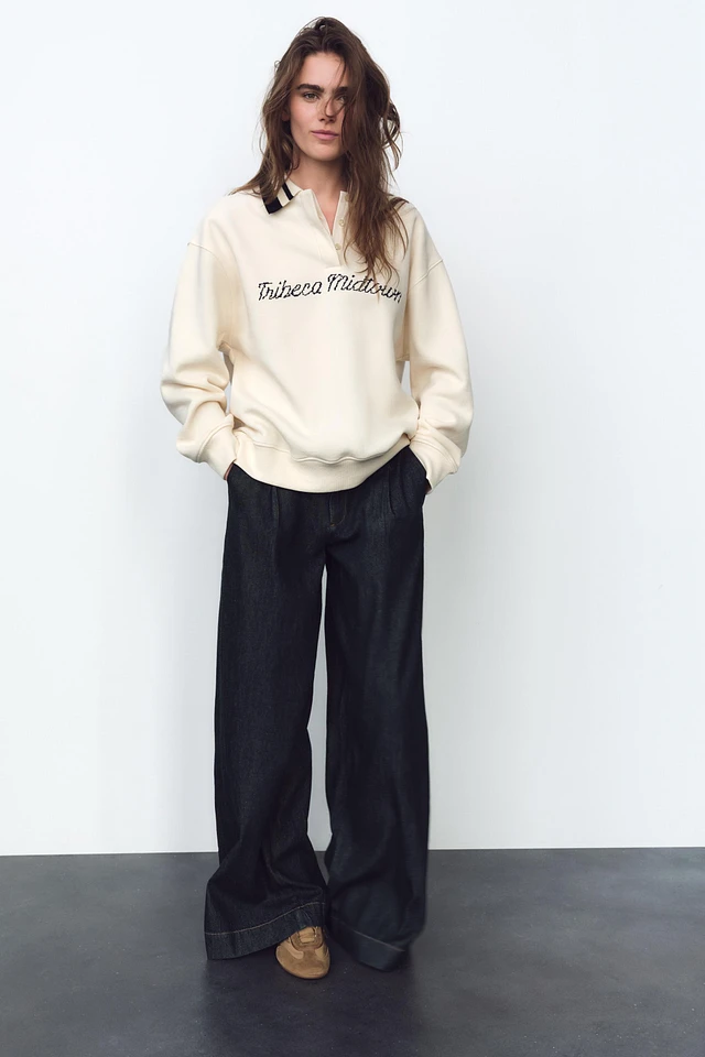 TEXT DETAIL POLO COLLAR SWEATSHIRT